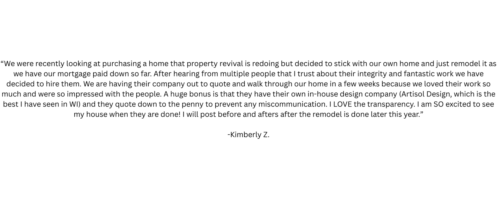 No one cares more about creating homes than we do. Property Revival is committed to revitalizing neighborhoods, one home at a time. We give them new life. We work with sellers, existing home owners, home buyers, and property investors. In today’s day and age, it just makes no sense for people to have to “settle” for a house you don’t like. Our philosophy is that people should love their homes. That’s where Property Revival excels. We take what you dislike and turn into something you love. Schedule your initial consultation with us today. Whether your goal is to revitalize your current home or enhance its market value, our industry knowledge ensures you receive expert advice tailored to your specific needs. Reach out to us at 608-838-4457, and let us commence the personalized guidance that will elevate your property to new heights.